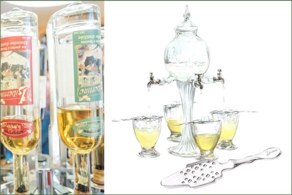 Le rituel du service de l’absinthe : tout un art ! L’usage veut qu’on ne consomme pas l’absinthe pure, mais tel que cela se faisait à l’époque flamboyante des bistrots à absinthe.