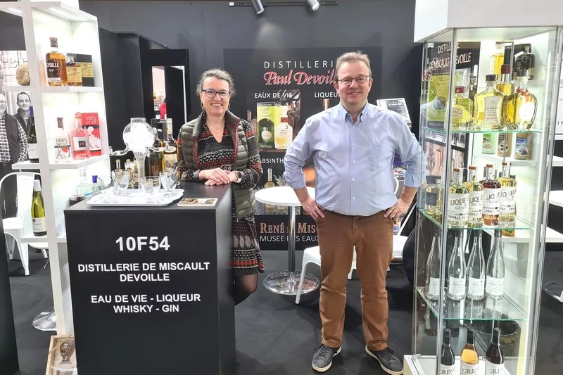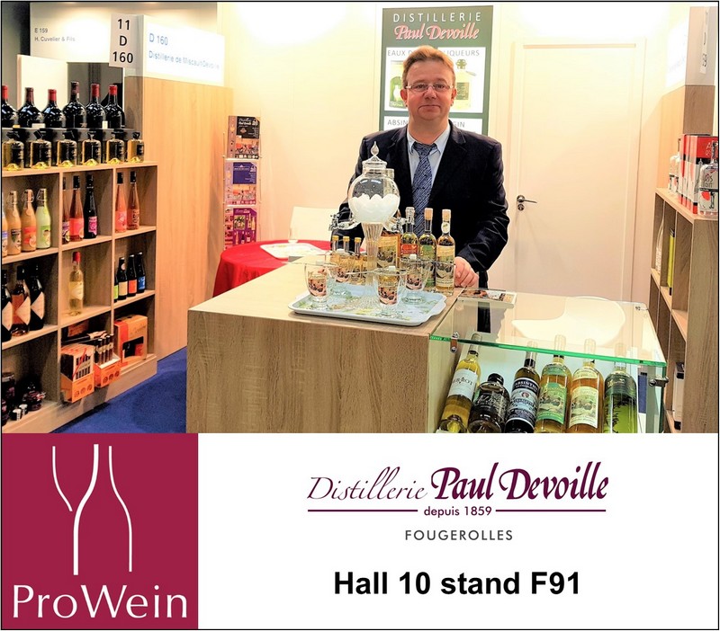 Marie-Béatrice et Hugues sont en place pour présenter toutes les spécialités de la Distillerie Paul Devoille aux visiteurs du salon ProWein à Düsseldorf jusqu’à mardi soir.