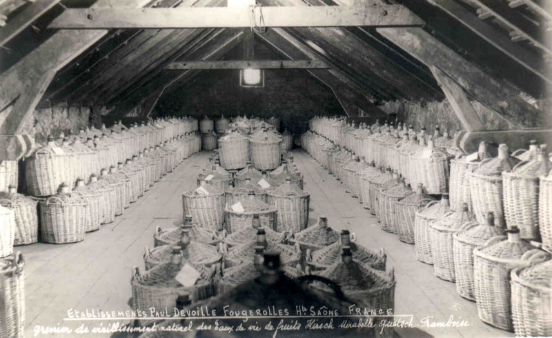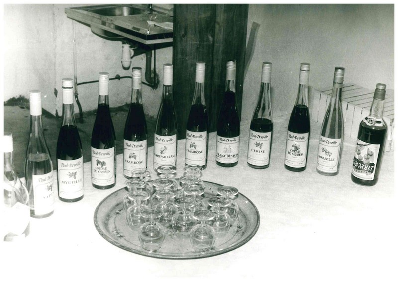 A l’époque de Paul Devoille, on ne fabriquait que quelques produits (Kirsch, prune, mirabelle, absinthes). Grâce à son successeur Raymond Gouttefroy, la production s’est élargie avec la Poire William, la Framboise … et une liqueur : la Doulce France, Liqueur de Framboise. Soit une dizaine de références.