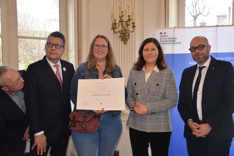 A cette occasion, comme 18 autres entreprises régionales, la Distillerie Paul Devoille a reçu son diplôme de renouvellement du label EPV datant de 2021, faisant suite à la labellisation initiale en 2015.