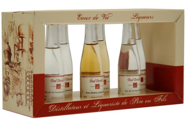 Au choix : La Bonne Prune® / La Vieille Poire® / Cognac / Calvados / whisky / Mirabelle.